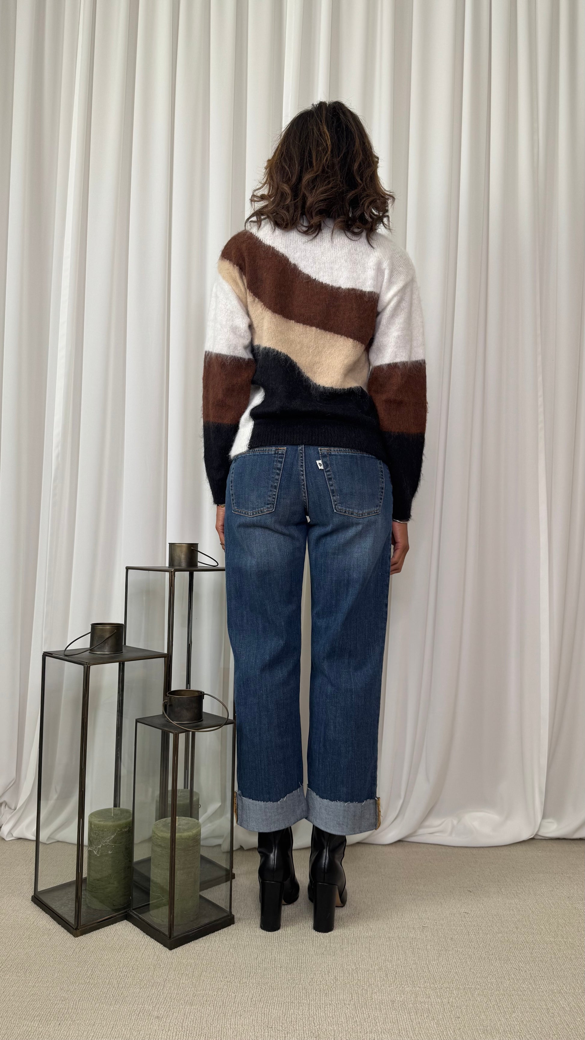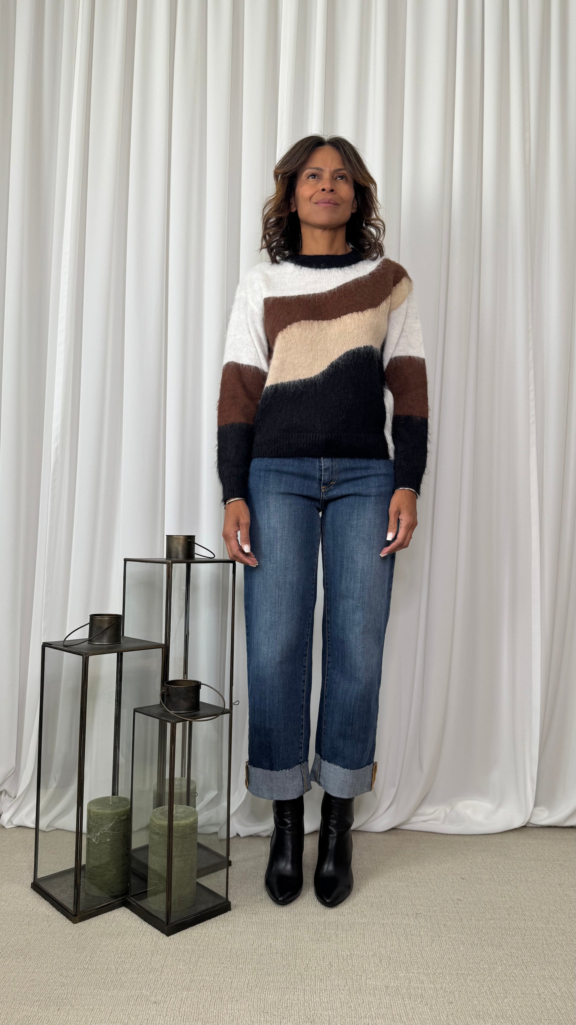 Angora-effect sweater with a refined wave pattern, each wave featuring a different color for a dynamic and eye-catching play of colors. The regular fit makes it easy to style.