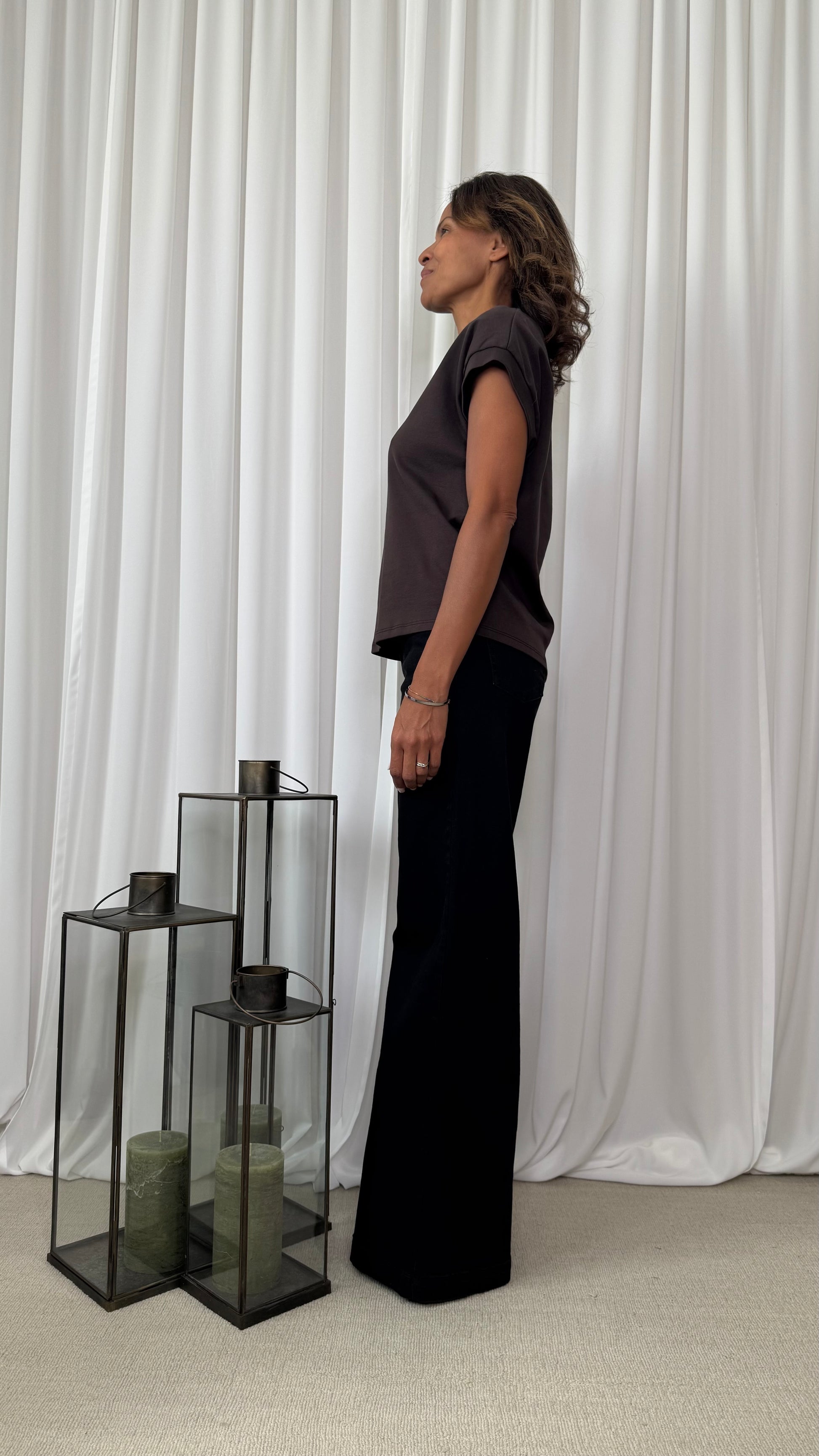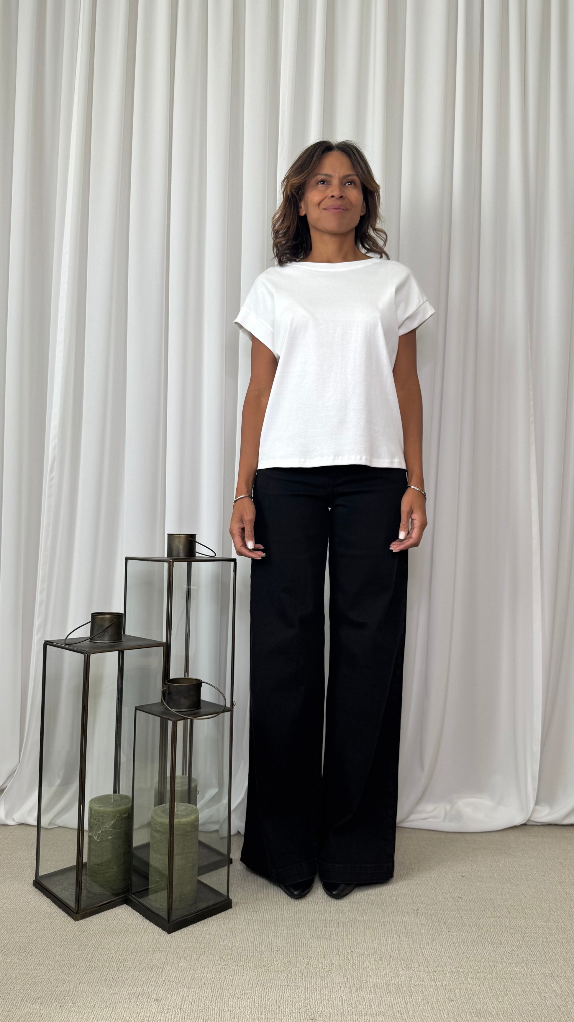 Basic T-shirt in soft cotton with a straight fit and short sleeves. Wide crew neck with a seam at the waist for a casual touch. A basic piece, perfect for everyday wear.