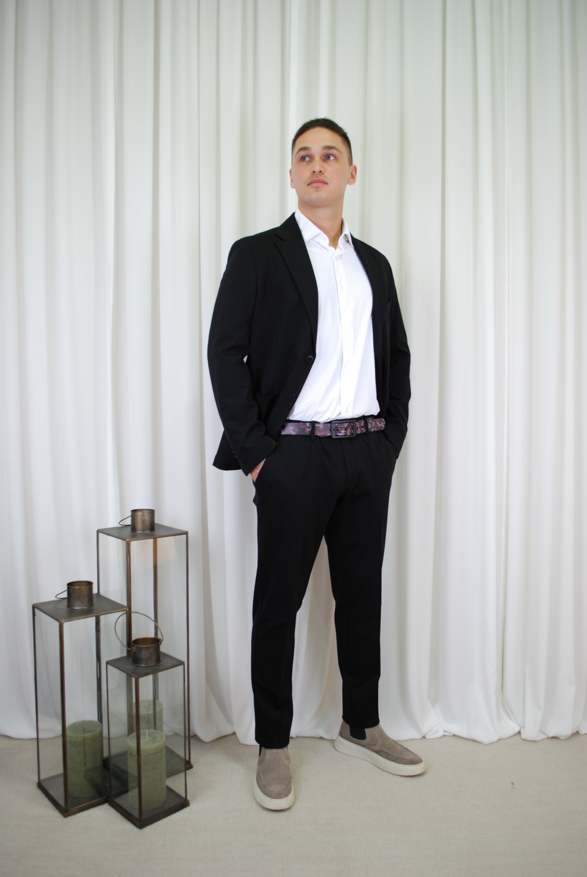 Questo abito è un capo essenziale e intramontabile per ogni guardaroba elegante. Realizzato in tessuto liscio di qualità, offre un look pulito e sofisticato perfetto per ogni occasione.