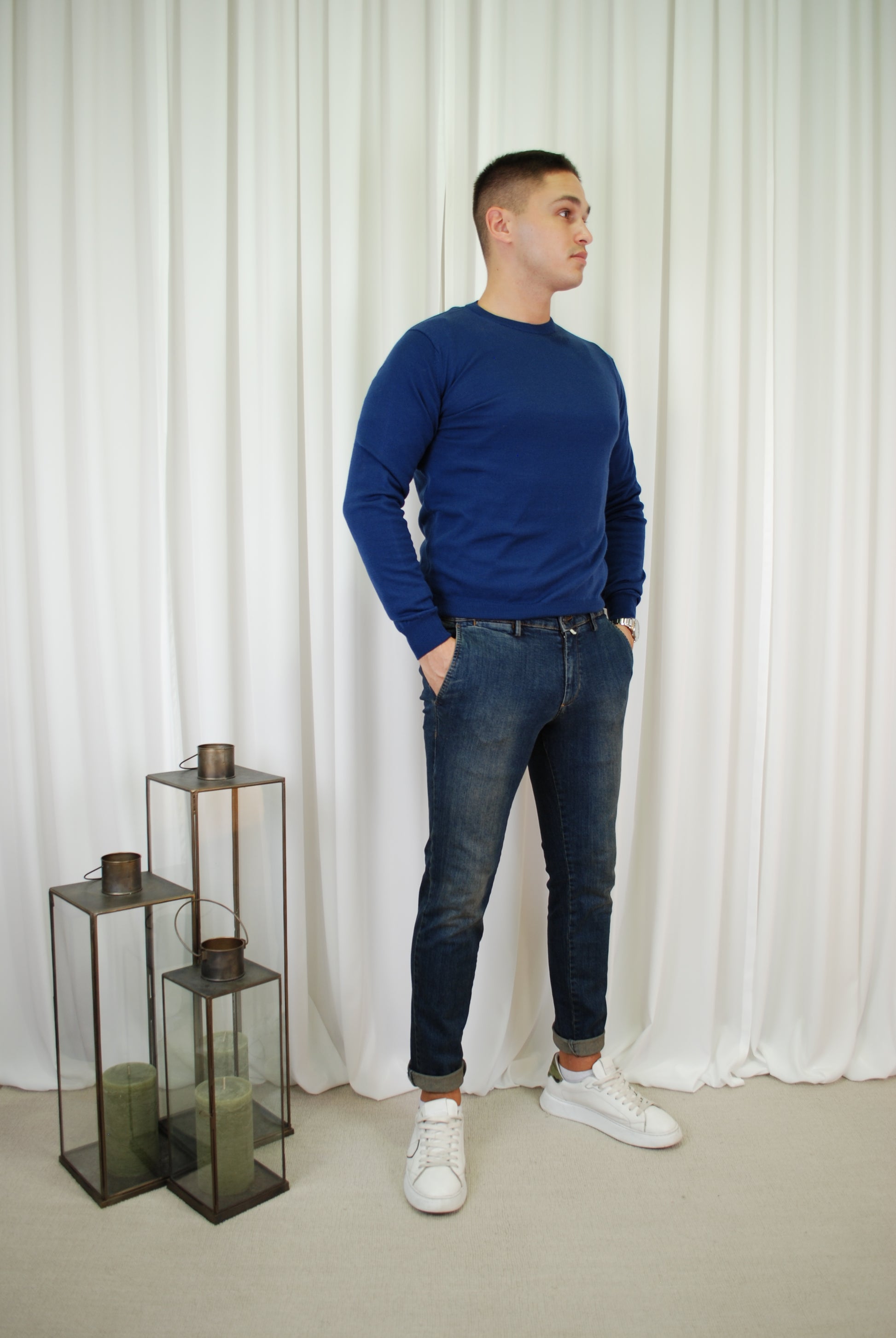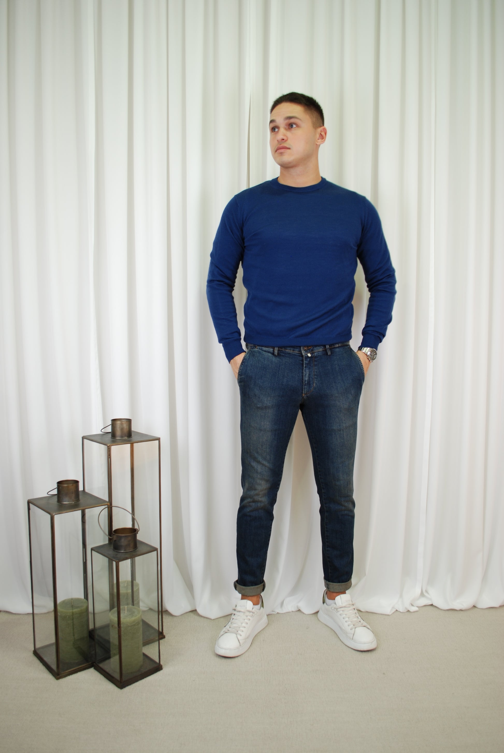 Questi jeans offrono la versatilità del denim con un tocco di eleganza in più grazie alle esclusive tasche posteriori a filetto chiuse da bottone. Ideali per chi cerca un’alternativa sofisticata al classico jeans.