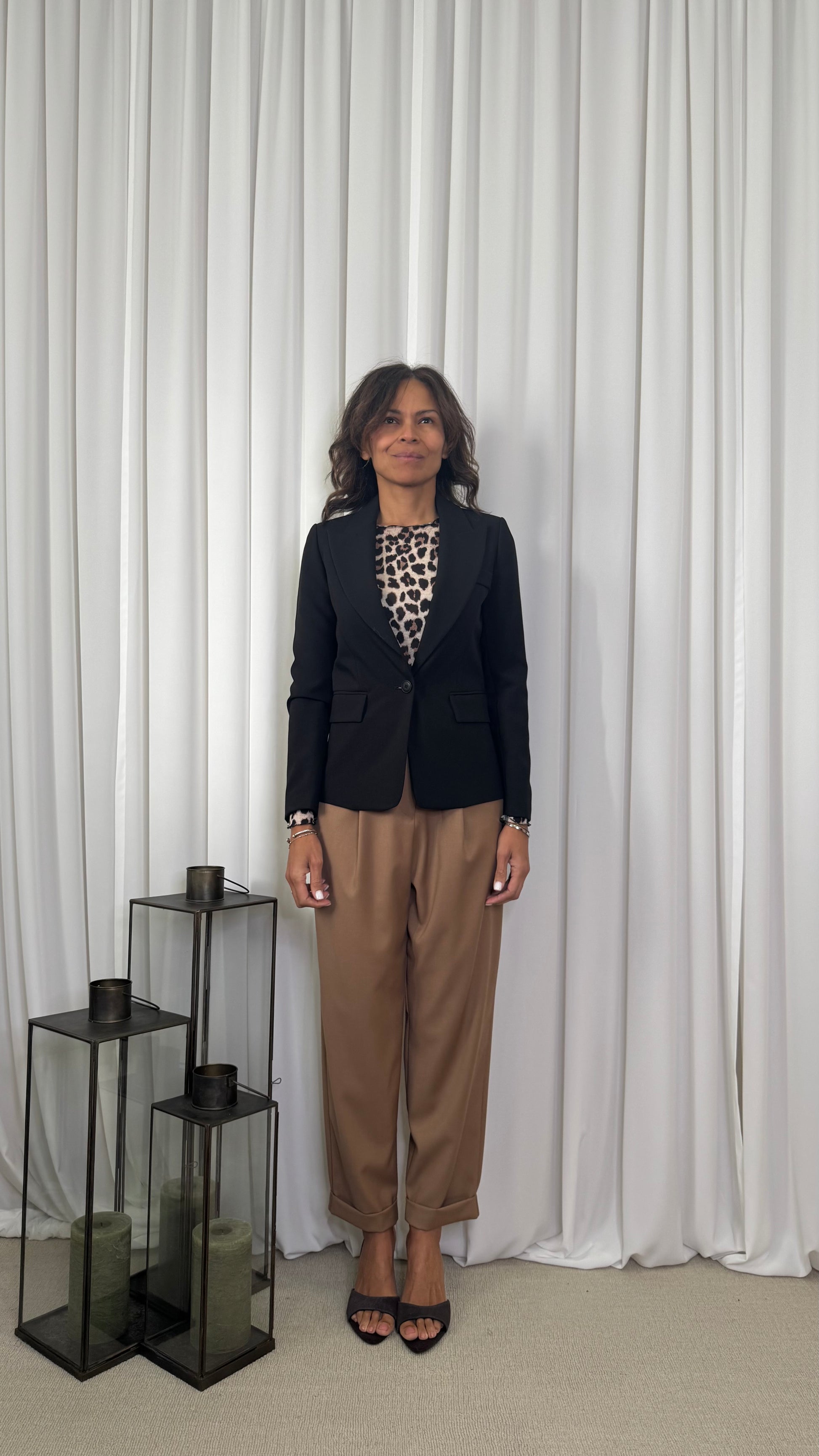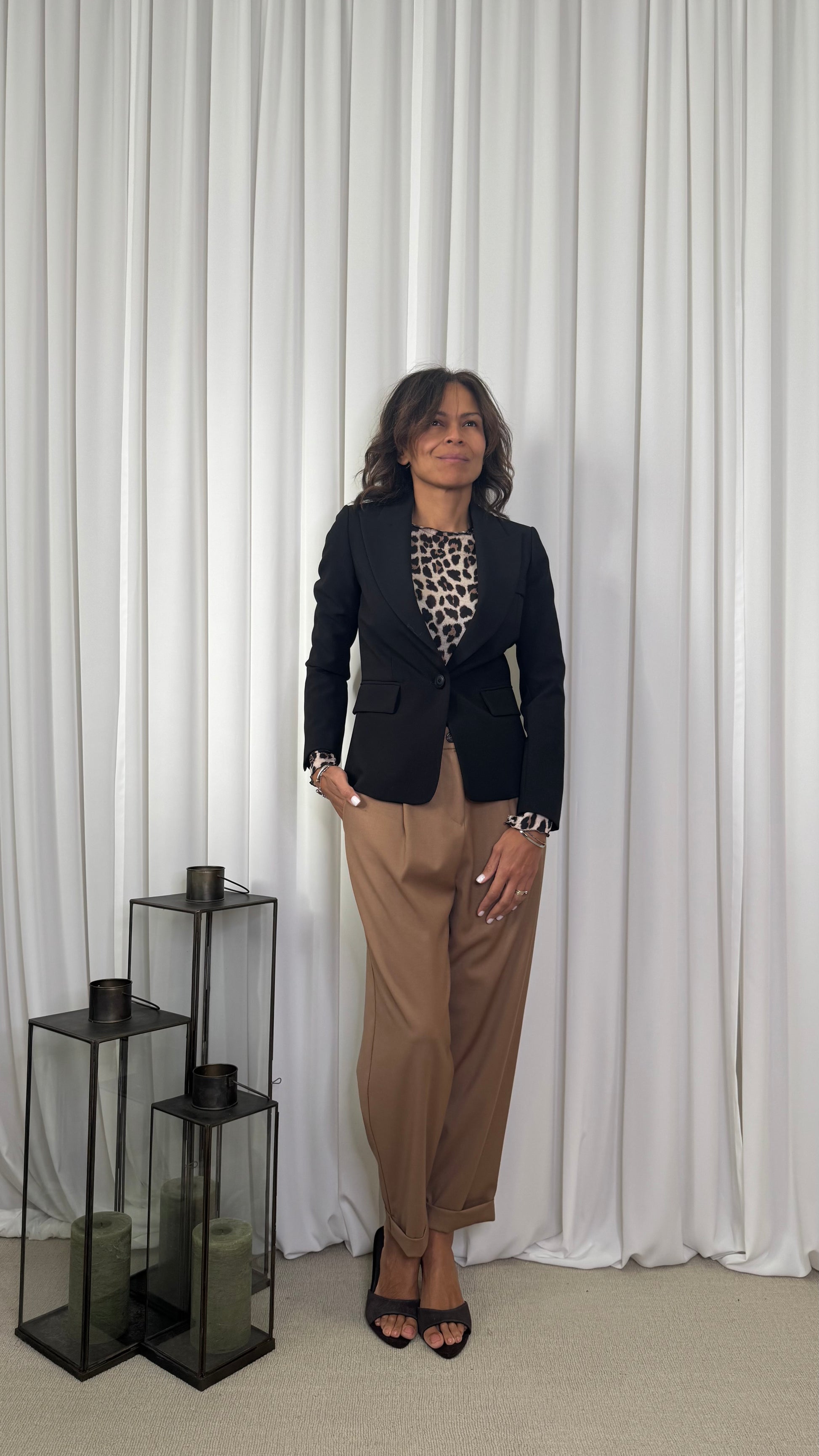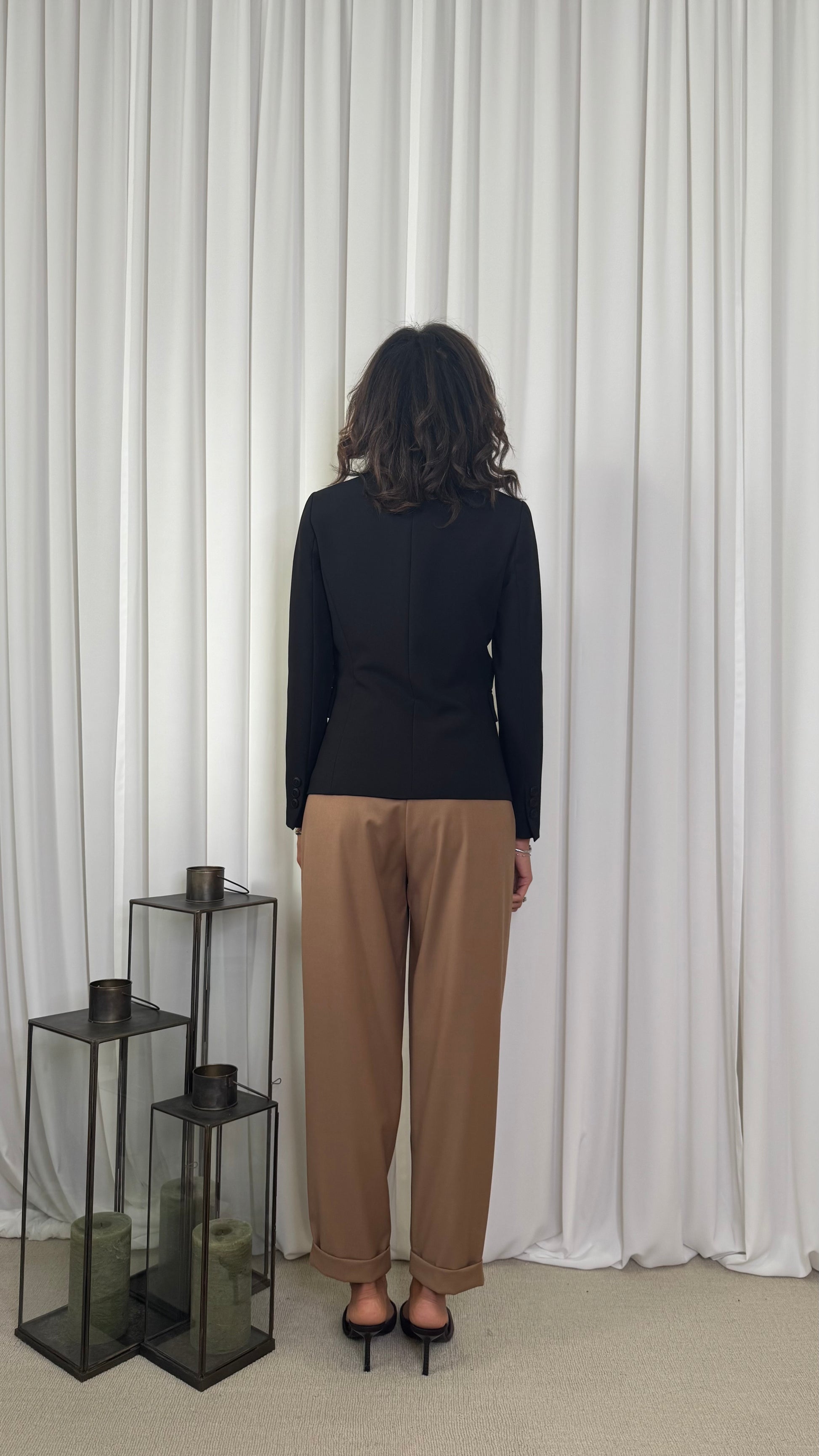 Un blazer indispensabile, perfetto per la donna che ama la versatilità e l'eleganza. Dal taglio sartoriale e con linea pulita, modella la figura aggiungendo raffinatezza a ogni abbinamento. Ideale da indossare con pantaloni morbidi o su un abito per un look da ufficio chic o per un aperitivo.