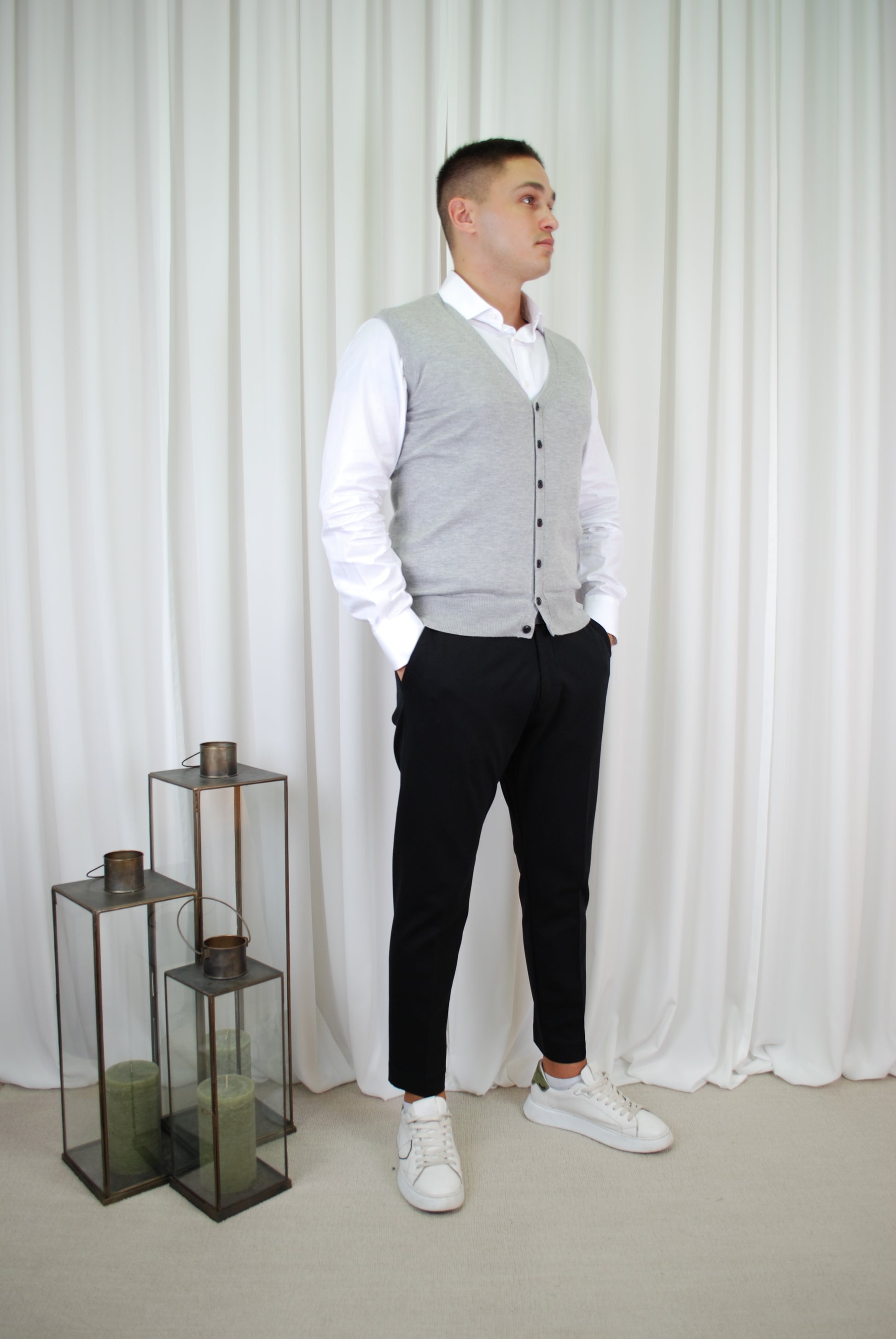 Gilet senza maniche in misto lana e cashmere, aggiunge eleganza e calore ai tuoi outfit nelle stagioni intermedie. Un capo raffinato e comodo, ideale per ogni occasione.