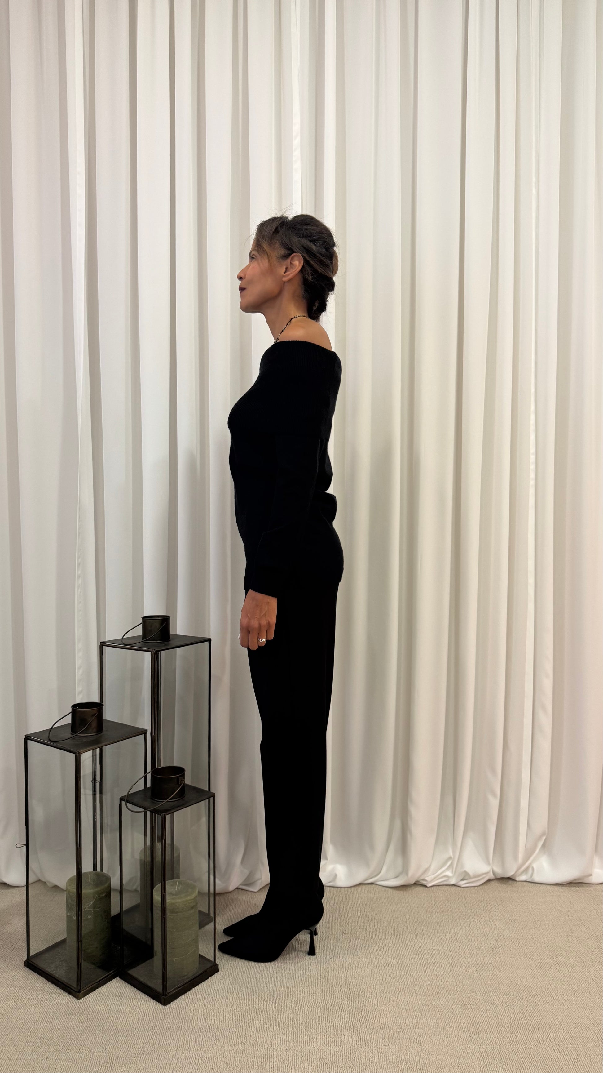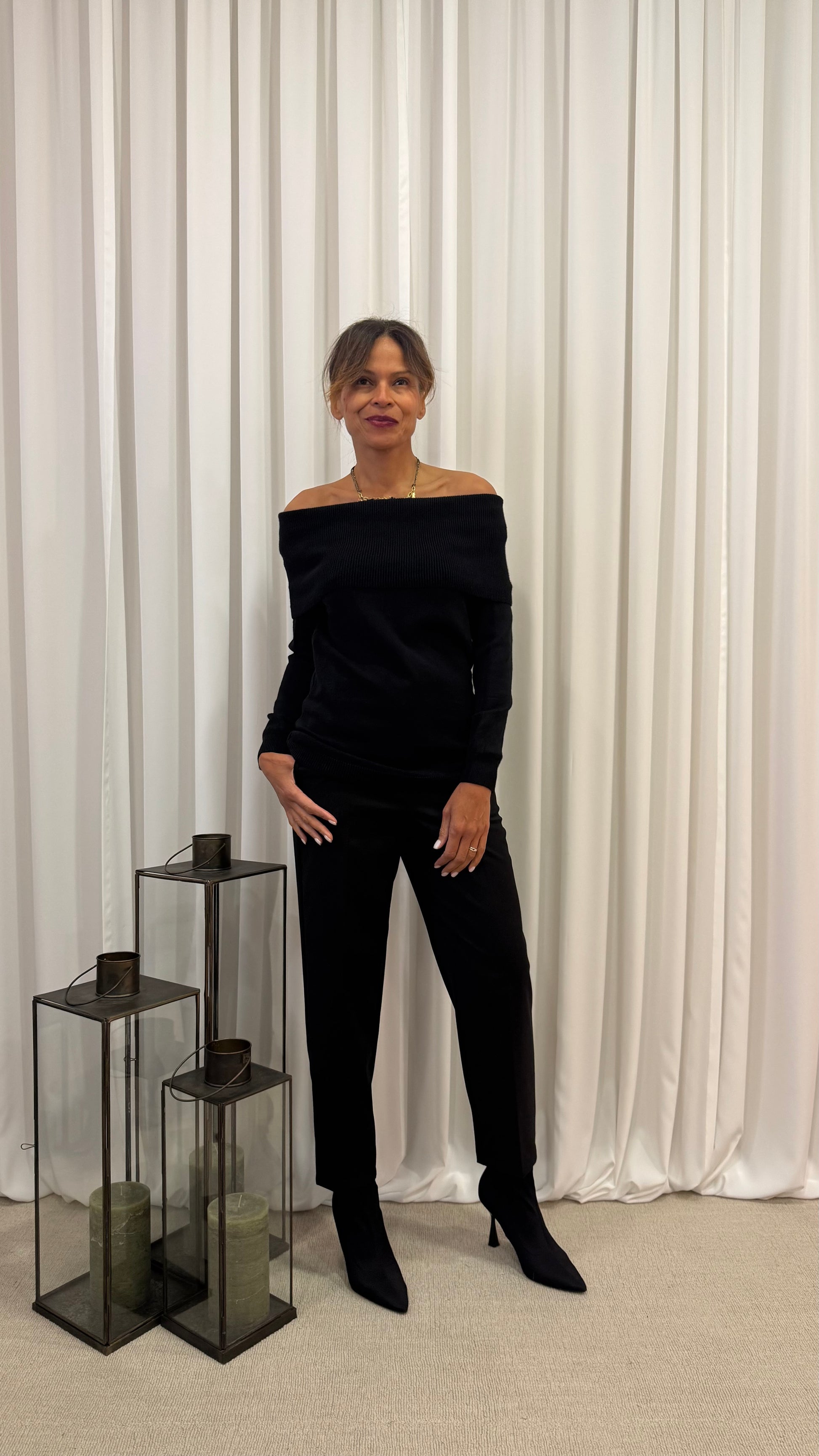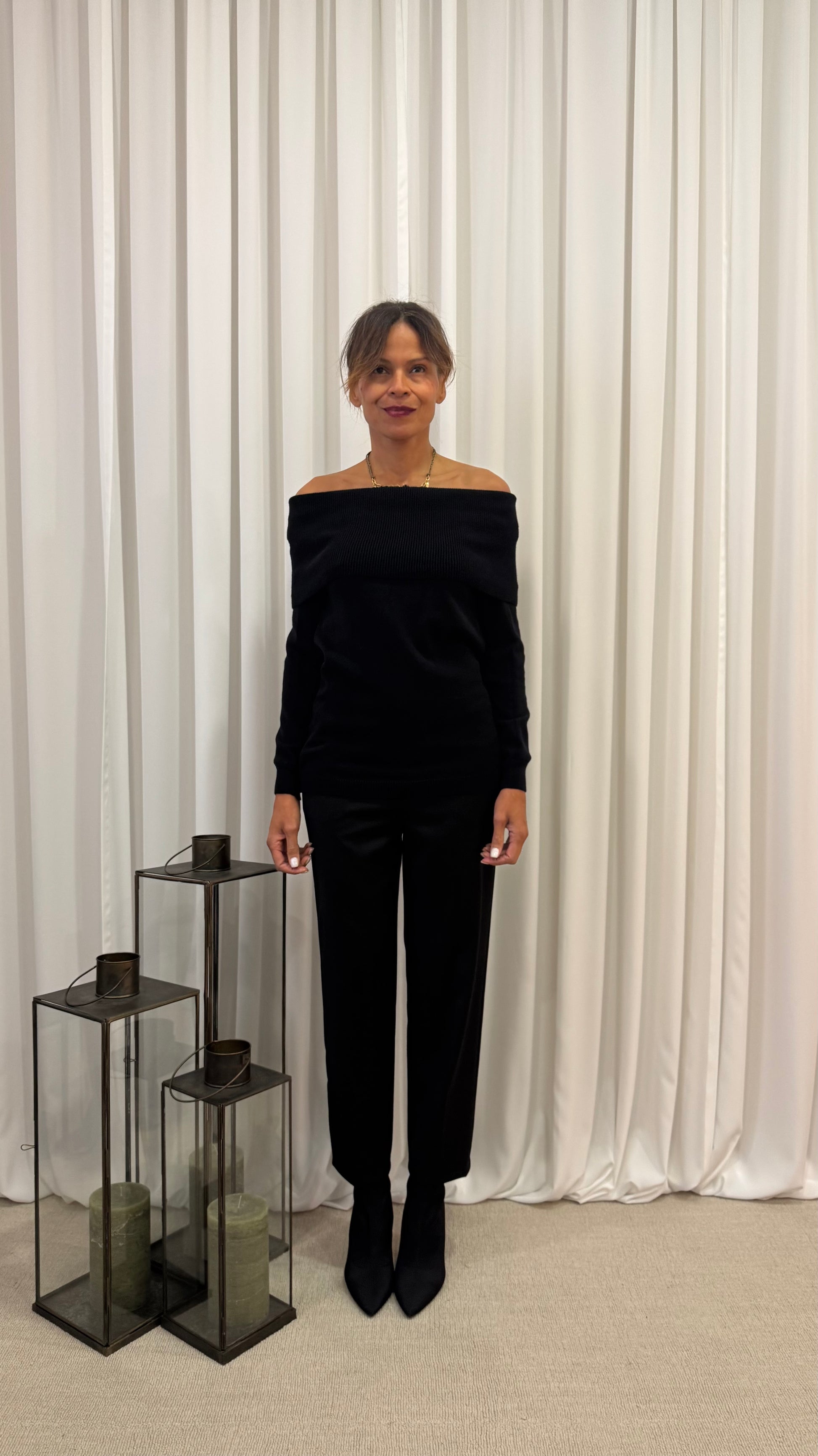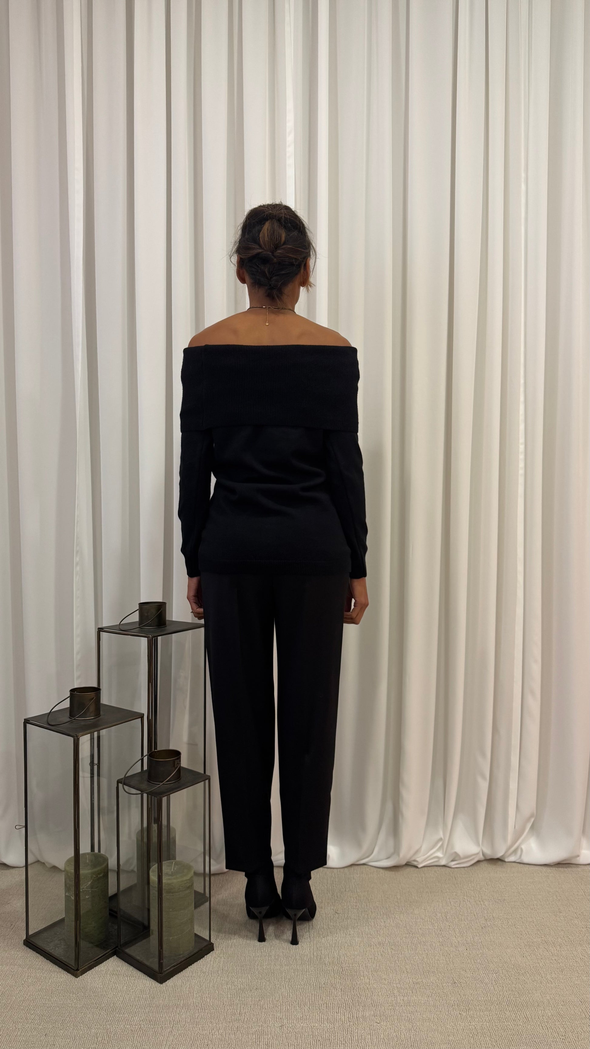 Maglia con ampio collo ripiegato che lascia elegantemente scoperte le spalle. Realizzata in morbido filato, unisce comfort e femminilità con stile.