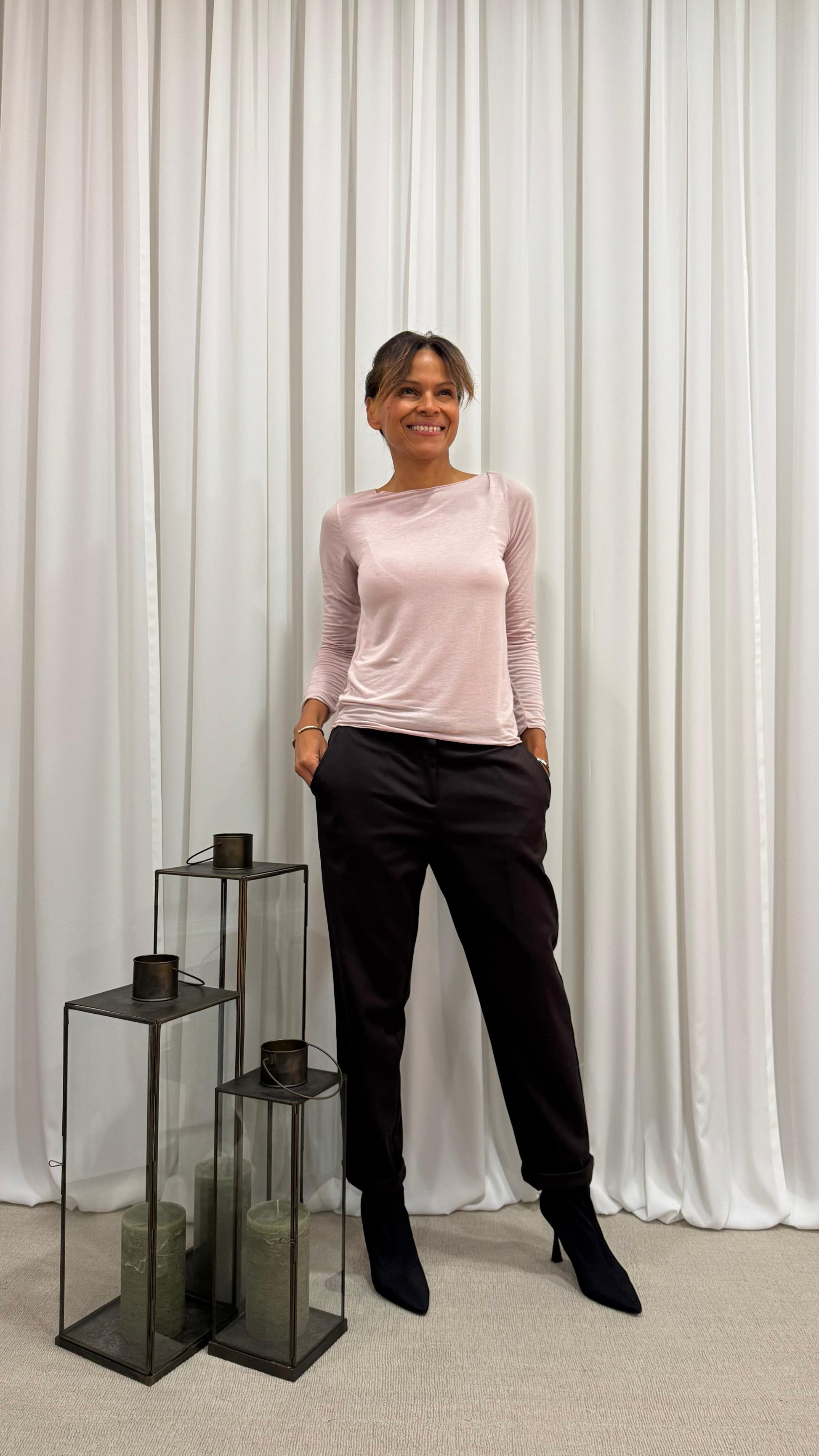 Maglia leggera in misto viscosa e cashmere, morbida e confortevole. Perfetta per la mezza stagione, ideale da sola o sotto giacche per un look essenziale e raffinato.