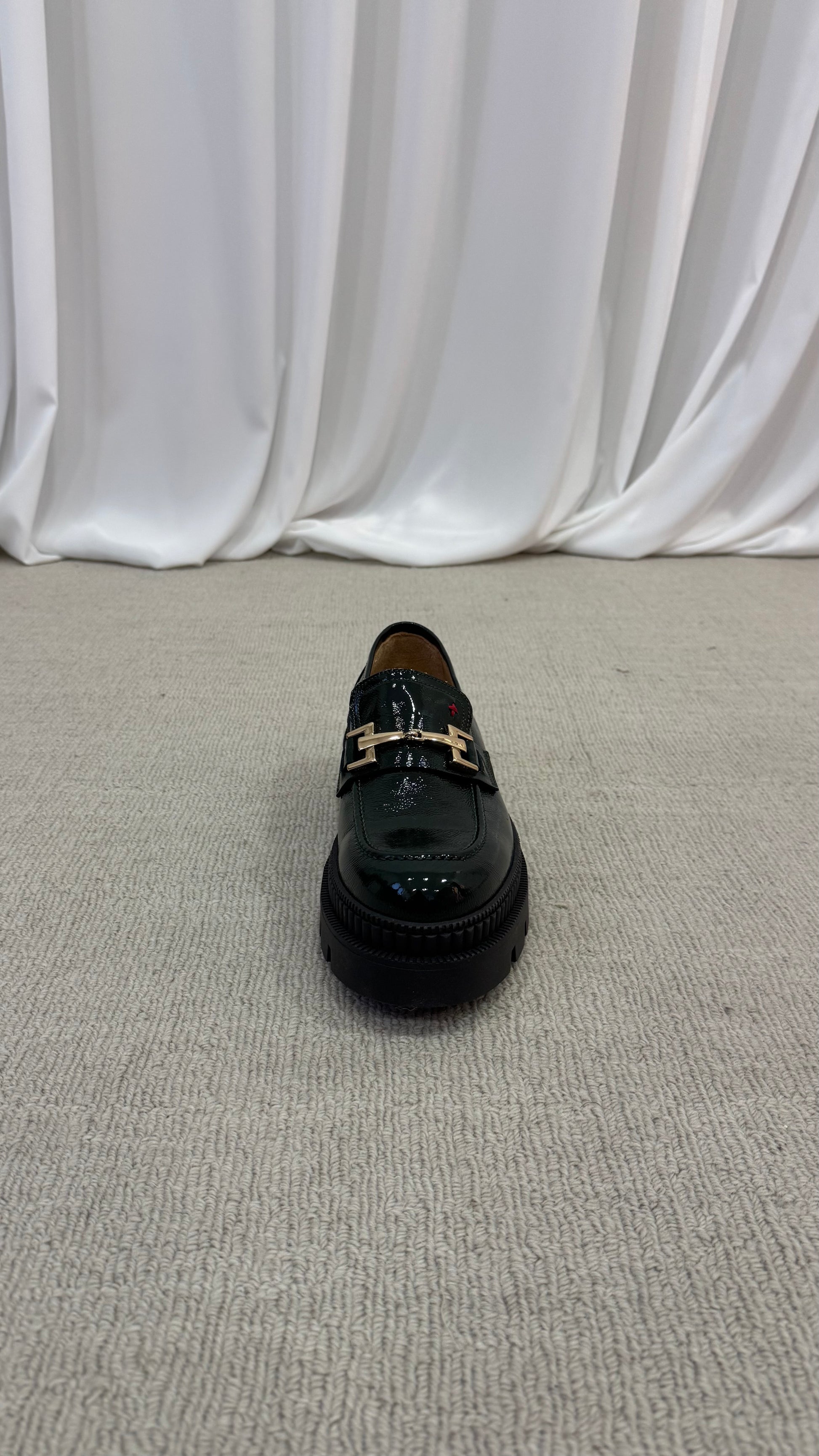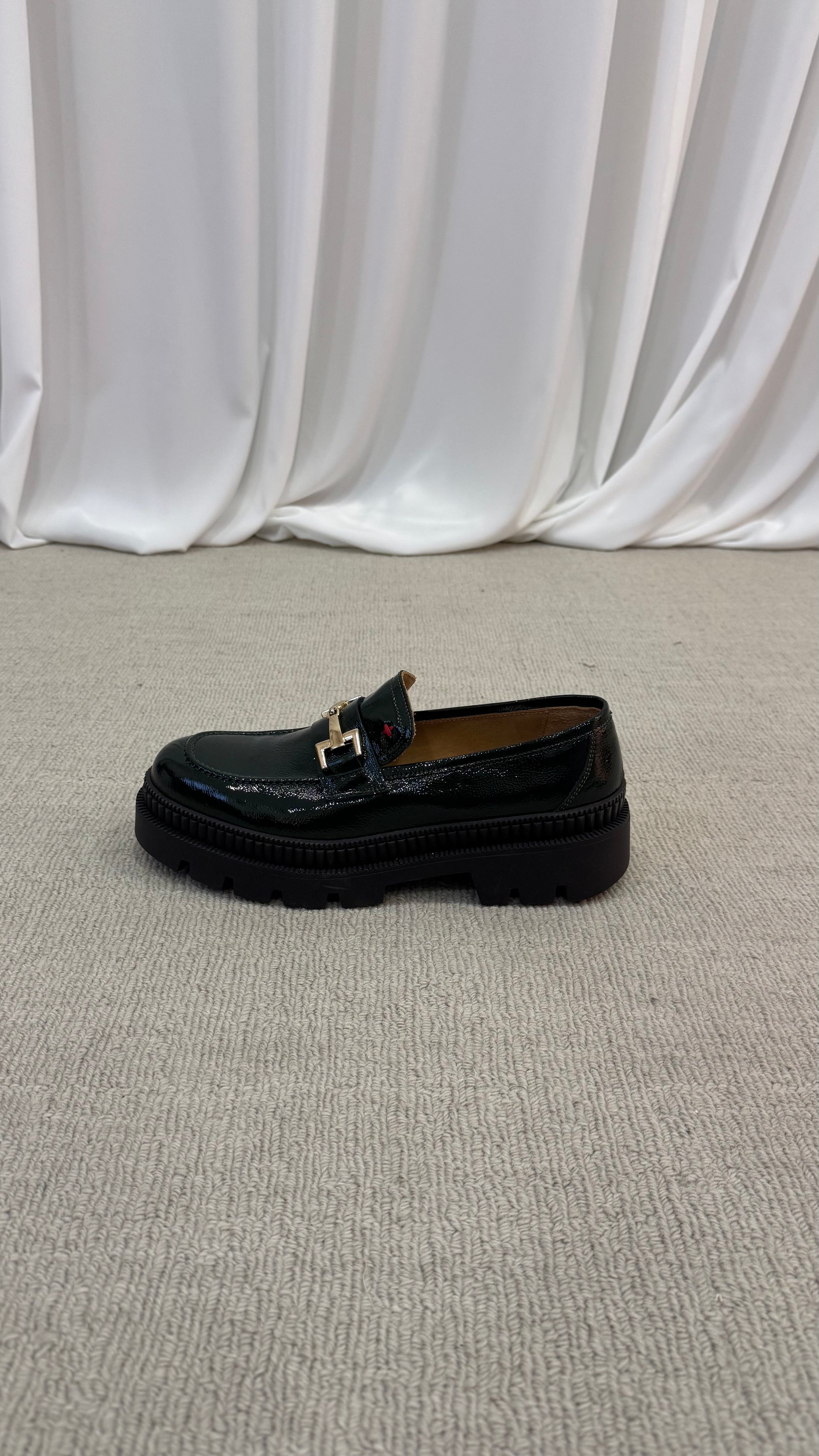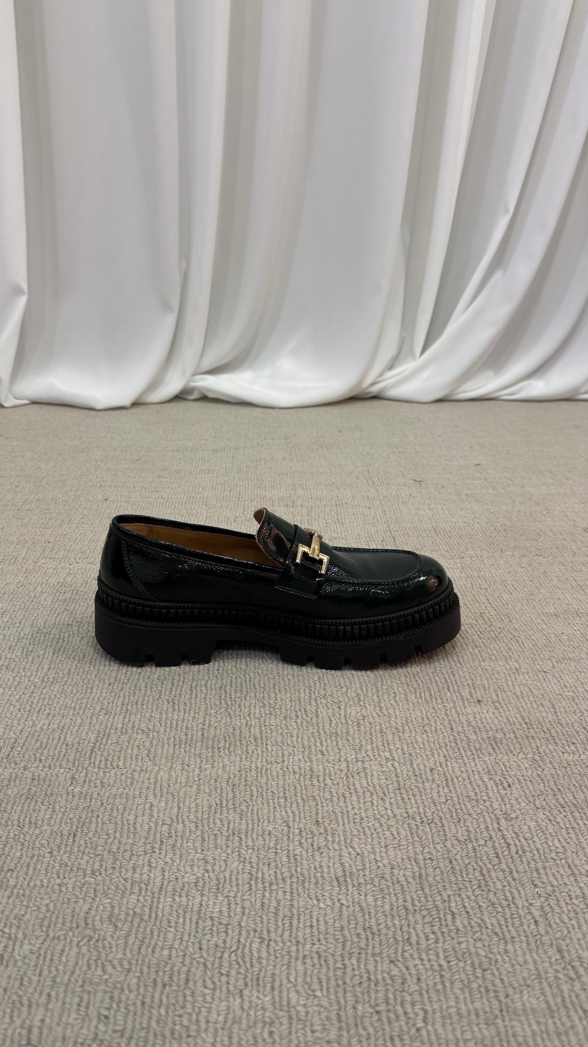 Mocassini in pelle con maxi suola carrarmato e dettaglio di morsetto dorato. Finitura lucida. Perfetti per unire un tocco classico a uno stile grintoso. Prodotto in Italia.