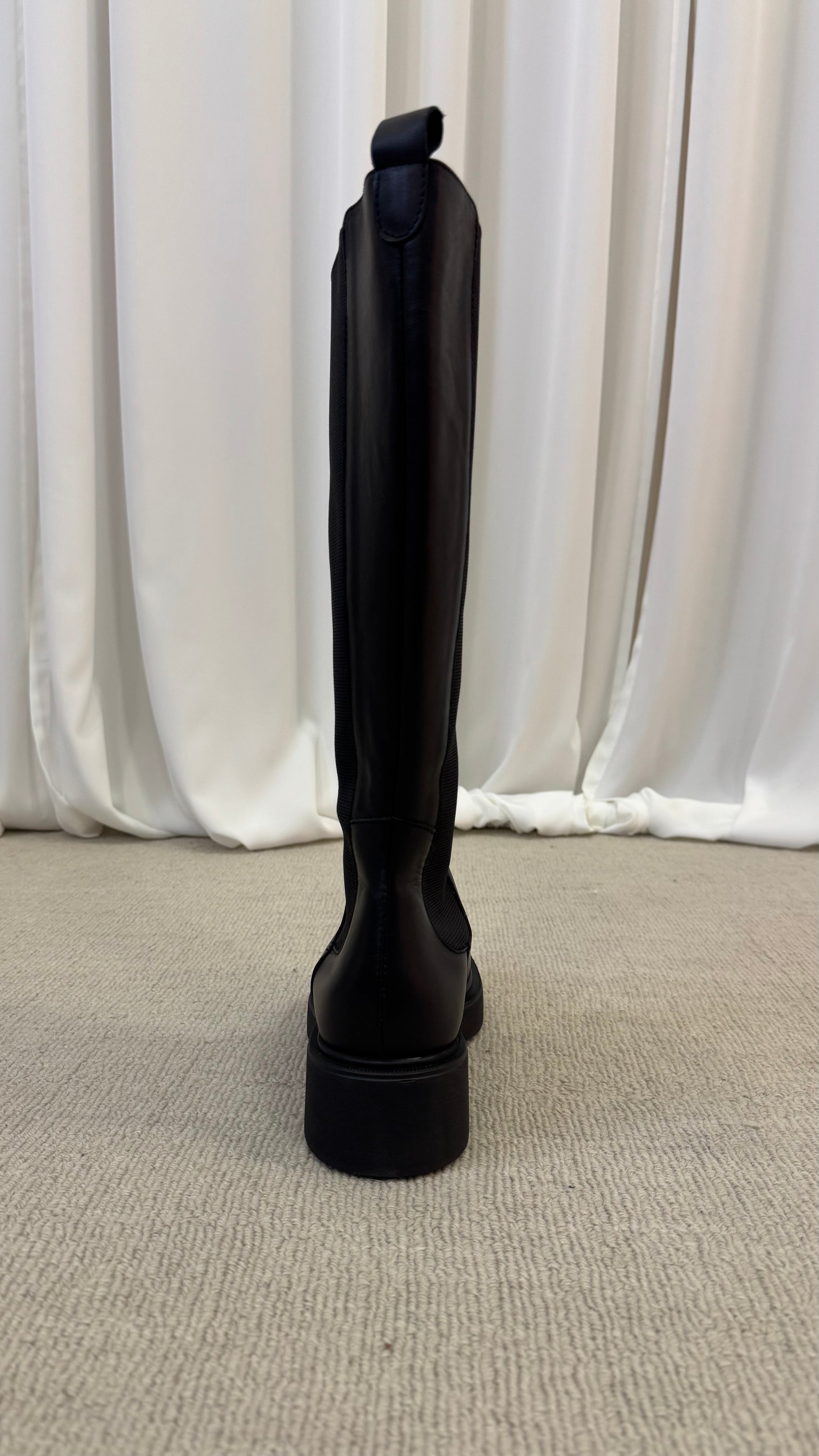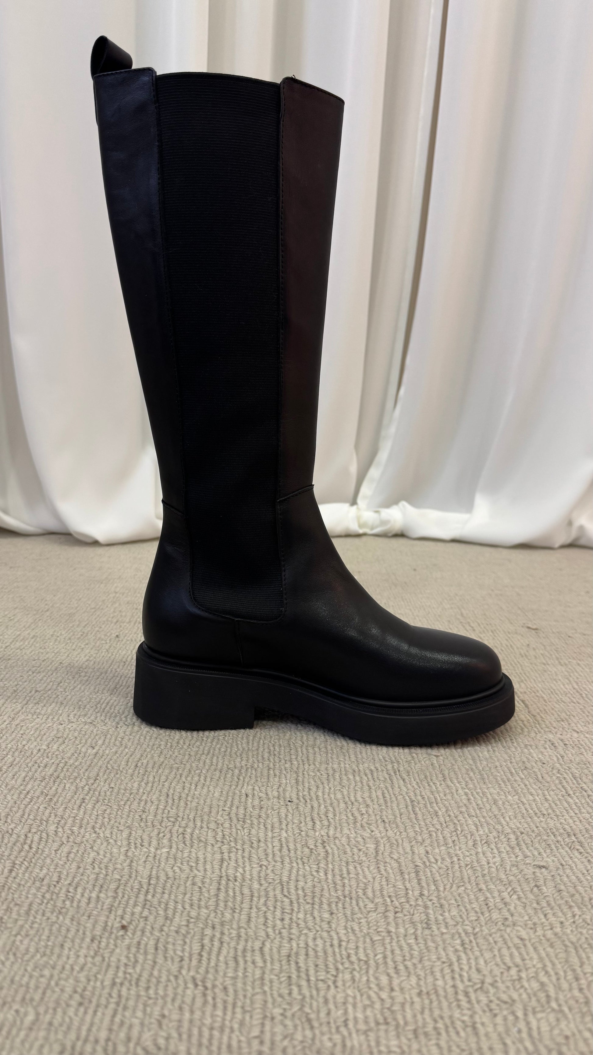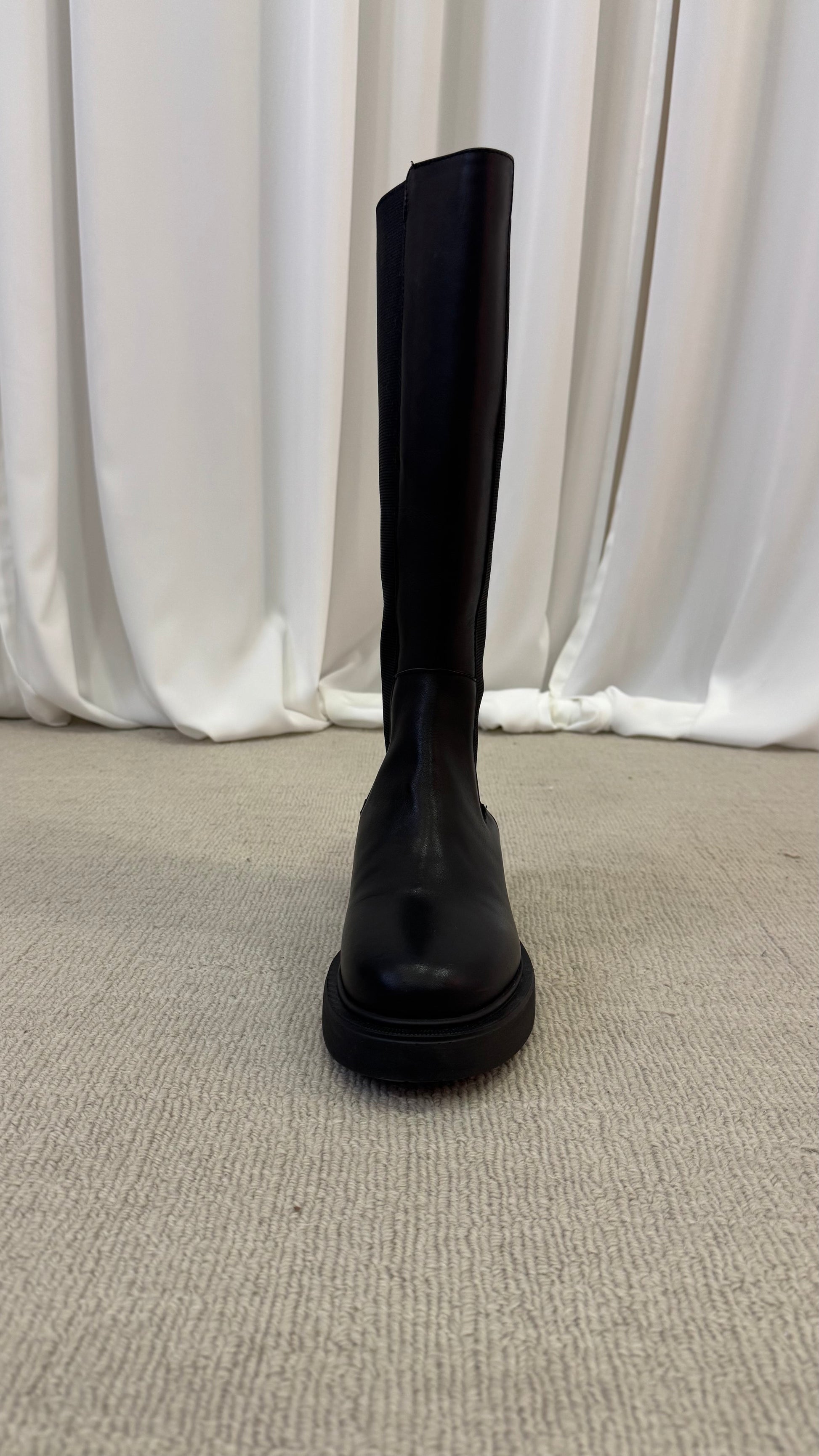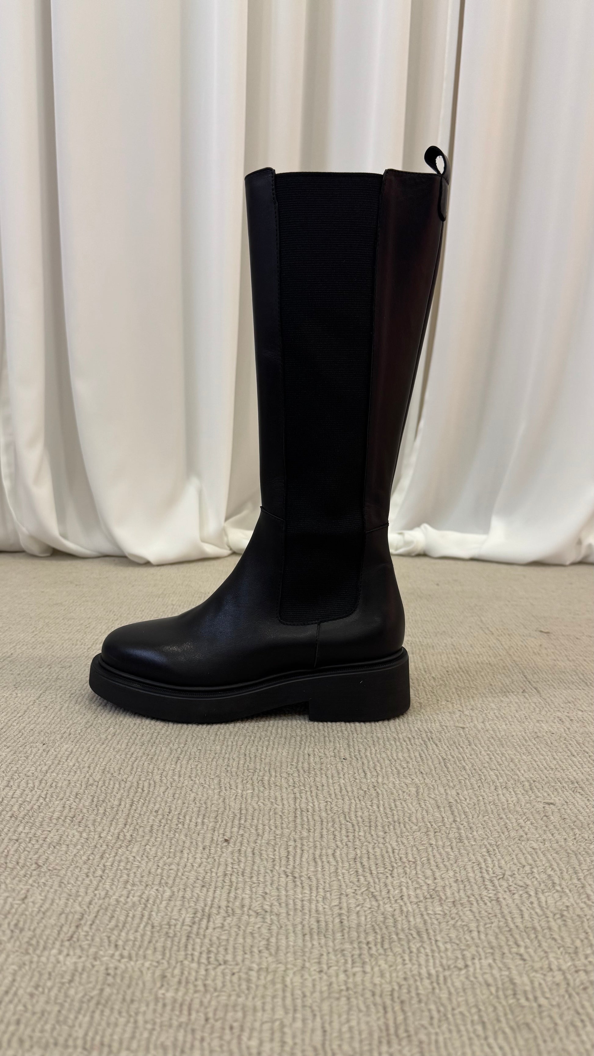Stivale in pelle con banda elastica laterale; il gambale è aderente e il passante posteriore facilita la calzata. Perfetto per un look audace e di tendenza, offre comfort e stile. Prodotto in Italia.